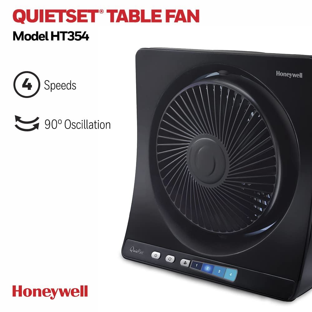 The Honeywell Quietset Table Fan, is an elegant table fan with four cooling settings from whisper quiet, up to turbo performance.
