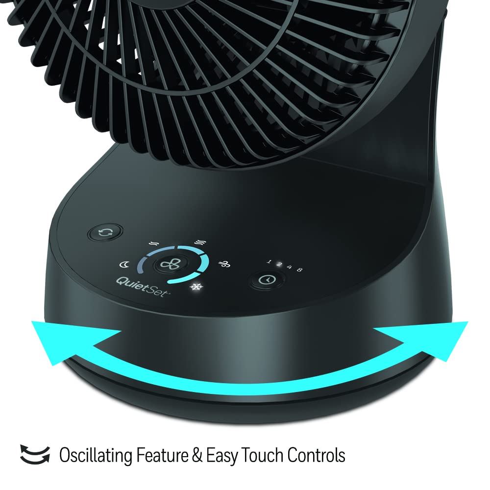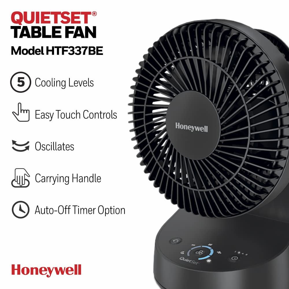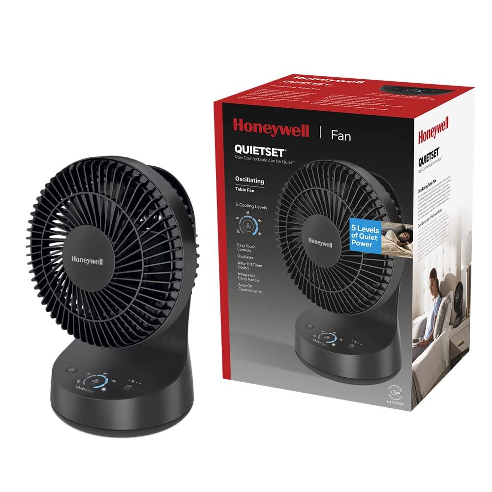 OSCILLATING FAN – The Honeywell QuietSet Oscillating Table Fan is an oscillating fan that provides wide area coverage and features an auto-off timer option for 1, 2, 4 and 8 hours of personalized cooling.