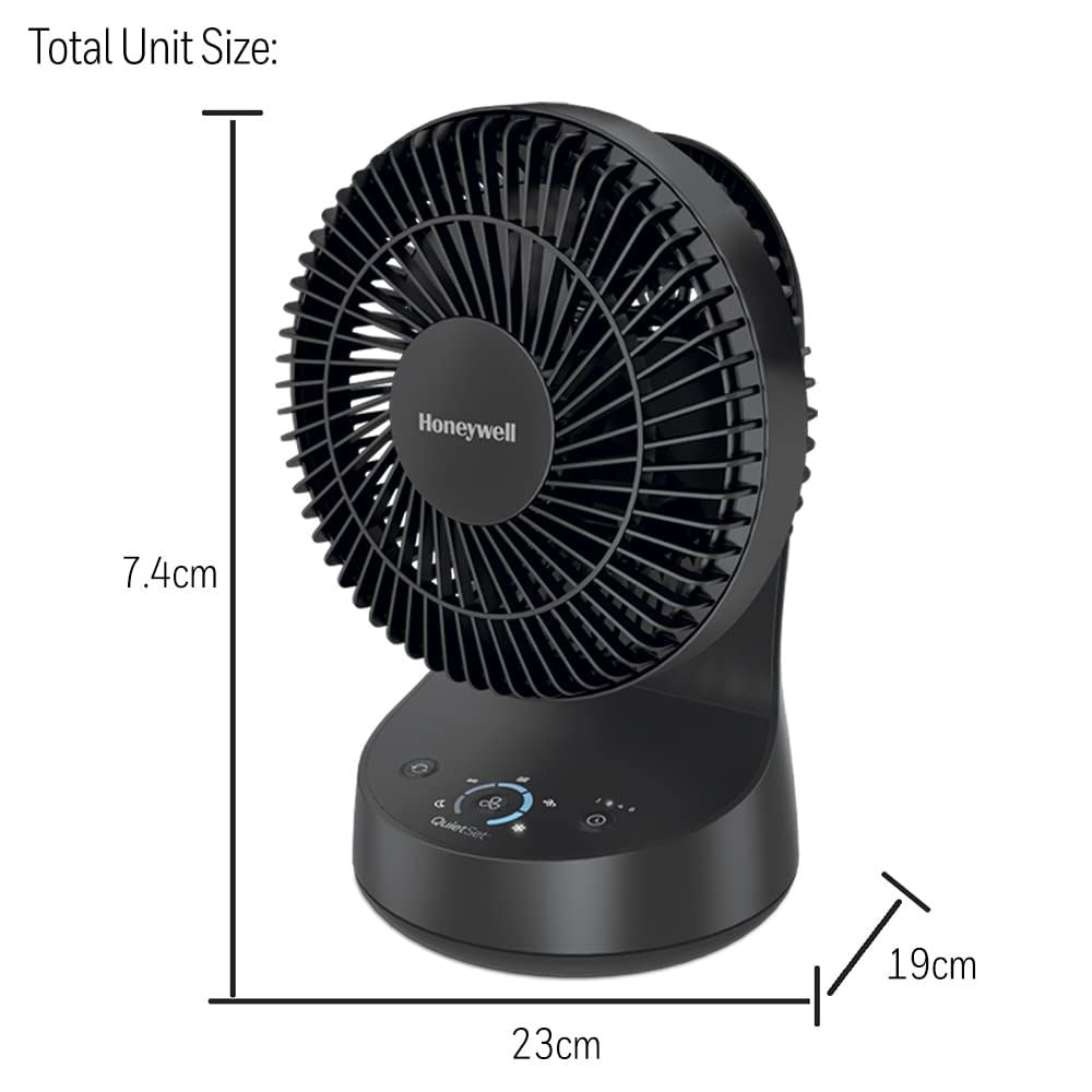 IDEAL FOR SMALL ROOMS – This tabletop desk fan has a compact design that is ideal for personal and small room cooling. Place it on a tabletop, a desk or nightstand and enjoy the cool, quiet comfort of this Honeywell QuietSet Fan.