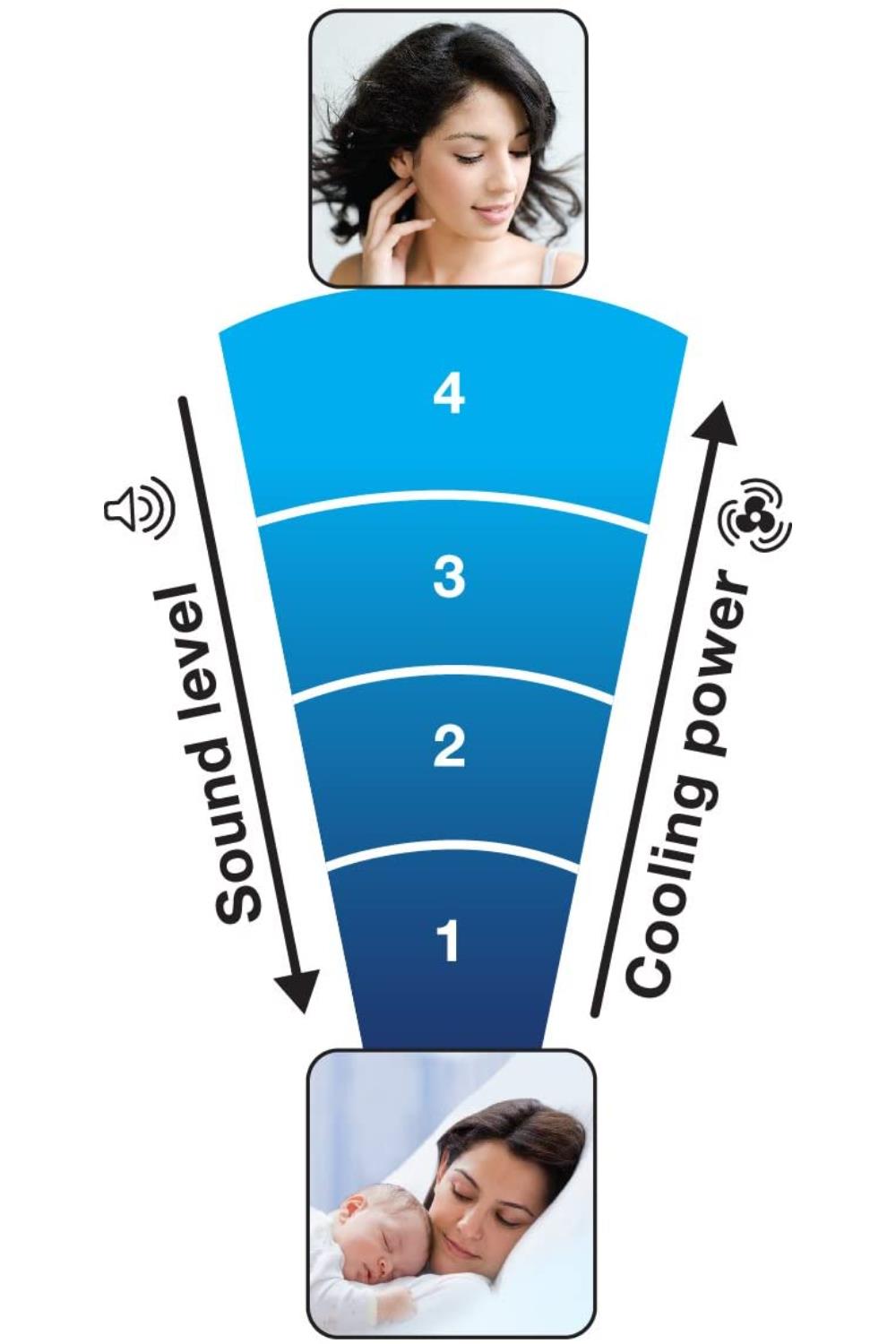 Introducing the new Whisper Quiet technology, this fan is absolutely ideal for use in the bedroom and so even on hot summer nights, you will be able to get an undisturbed sleep. 75 Oscillation allows for a large-scale cooling. Remote Control. 5 Speed Settings. Automatic Shutdown Timer that can be set between 1, 2, 4 or 8 hours. Easy to Use Control Panel. 3 Year Warranty. 5 levels of quiet control for continuous comfort.