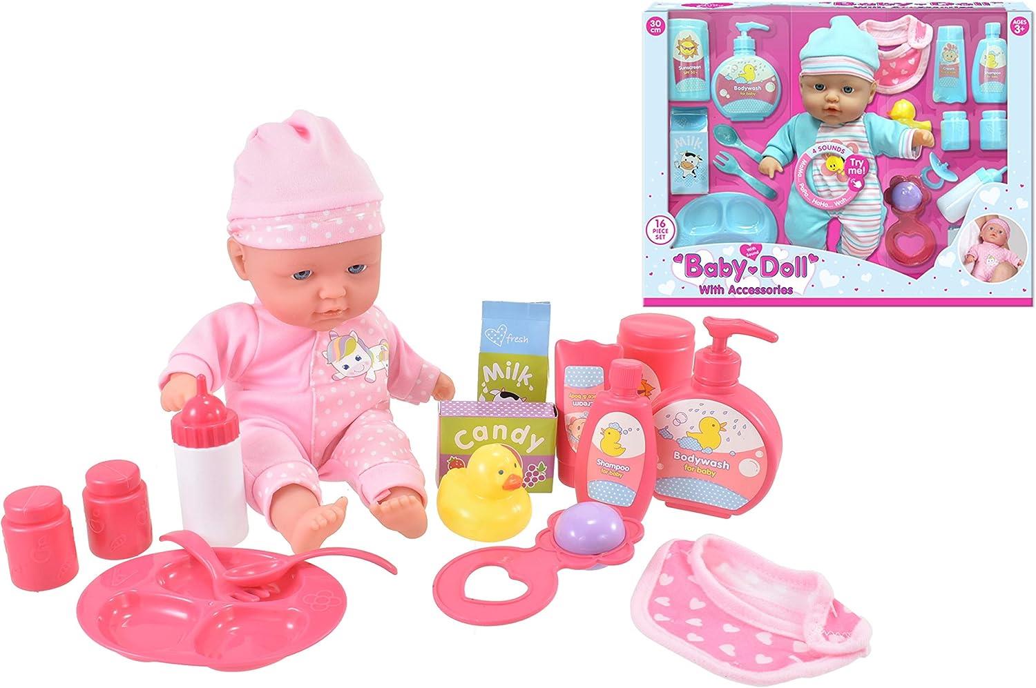 Kids Will Love It - Meal time and Bath time baby doll and accessories 16 piece play set. This is a great baby doll set for girls or boys!