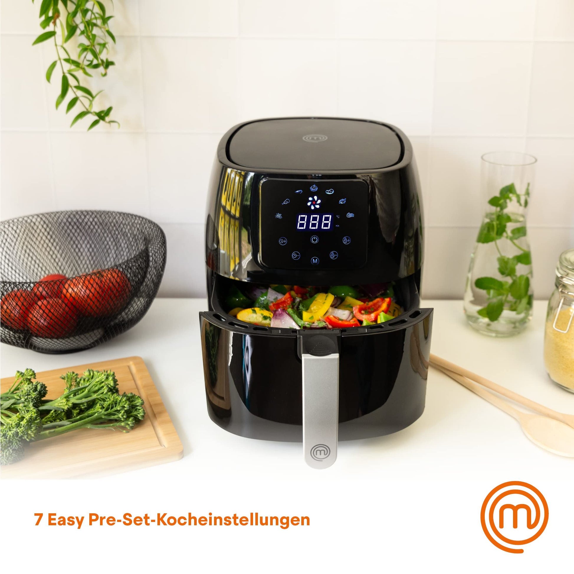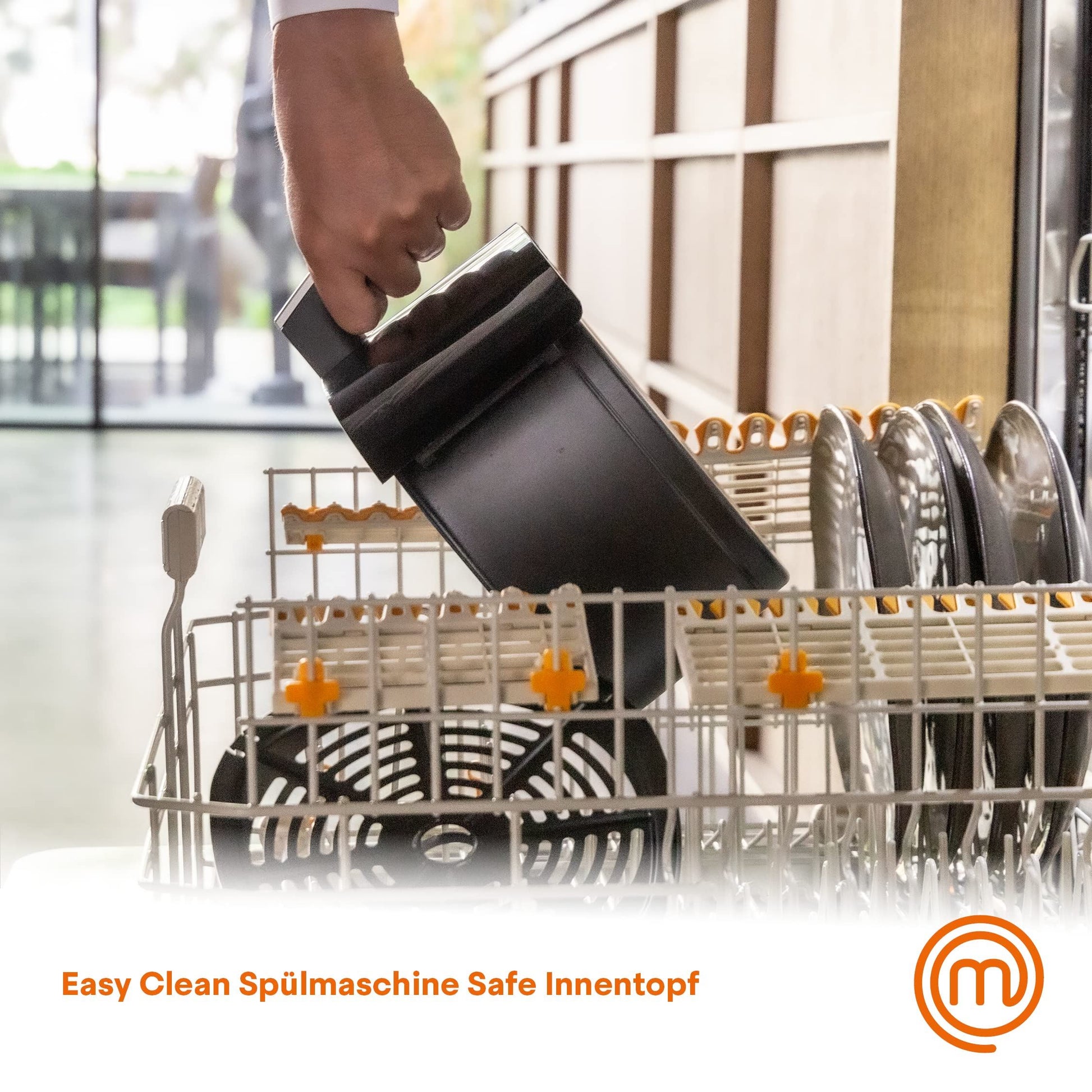 The MasterChef fat free fryer is essential for households of leisure and professional chefs alike. It is an official product from the famous TV series MasterChef and does not leave unpleasant odours when used thanks to the container made of PET PBT (polyethylene terephthalate). Equipped with a temperature adjustment function (80°C - 200°C) and a removable container with PTFE non-stick coating, the application and maintenance of the fryer is very easy. Enjoy your meal!