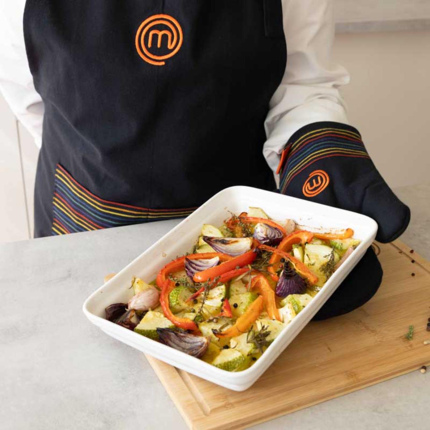 Look like the pros with this coloured MasterChef apron. Perfect for both men and women, it's made from 100% cotton, with a vegan leather adjustable strap and a pocket for all your cooking essentials. Quality and comfort guaranteed.