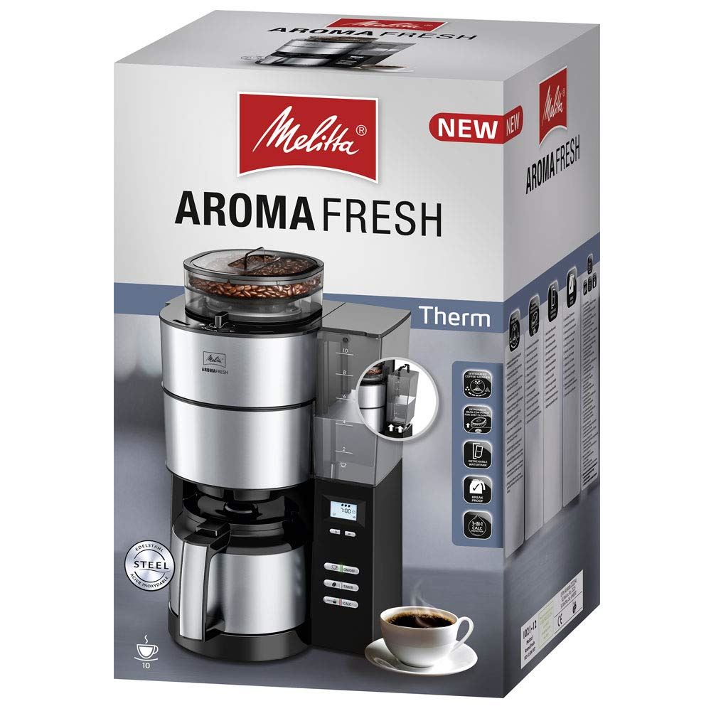 - Contents: 1x Melitta Filter Coffee Machine with Stainless Steel Jug, AROMAFRESH GRIND & BREW 1021-12 THERMAL, Dimensions (LxWxH) 29.8 x 30.8 x 48.6, Weight (kg) 5.71, STAINLESS STEEL