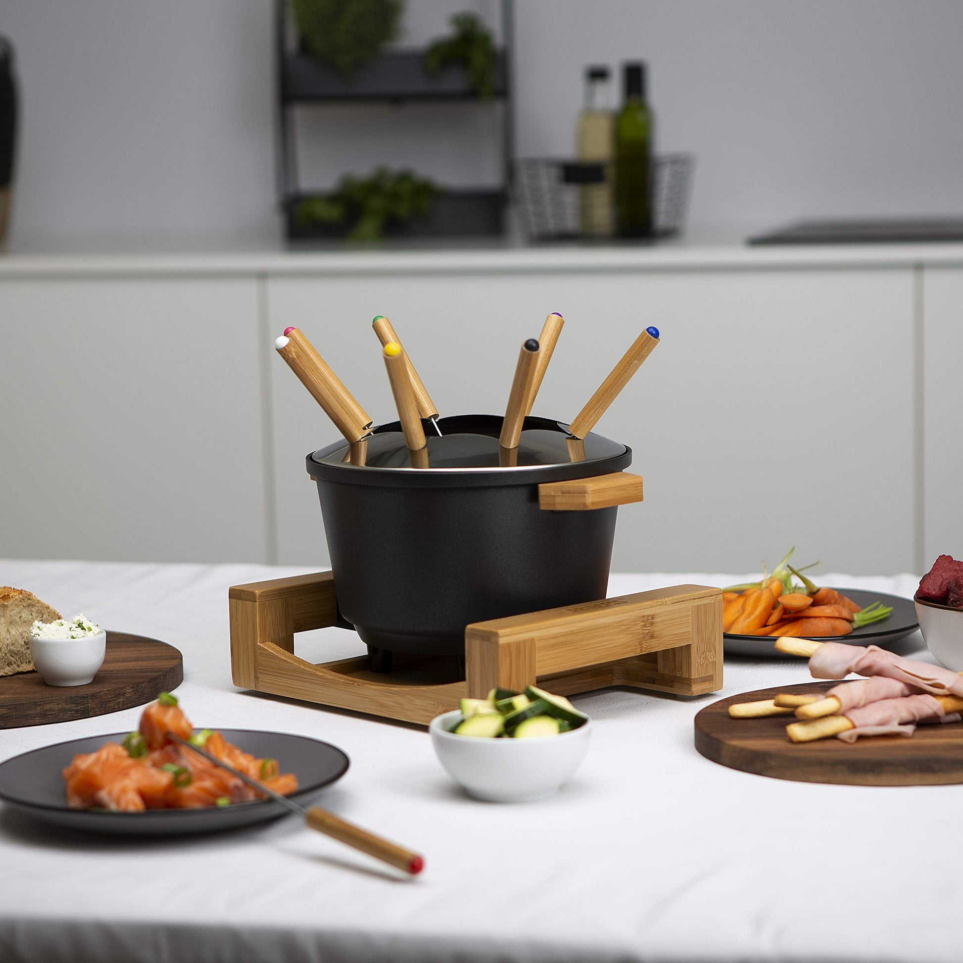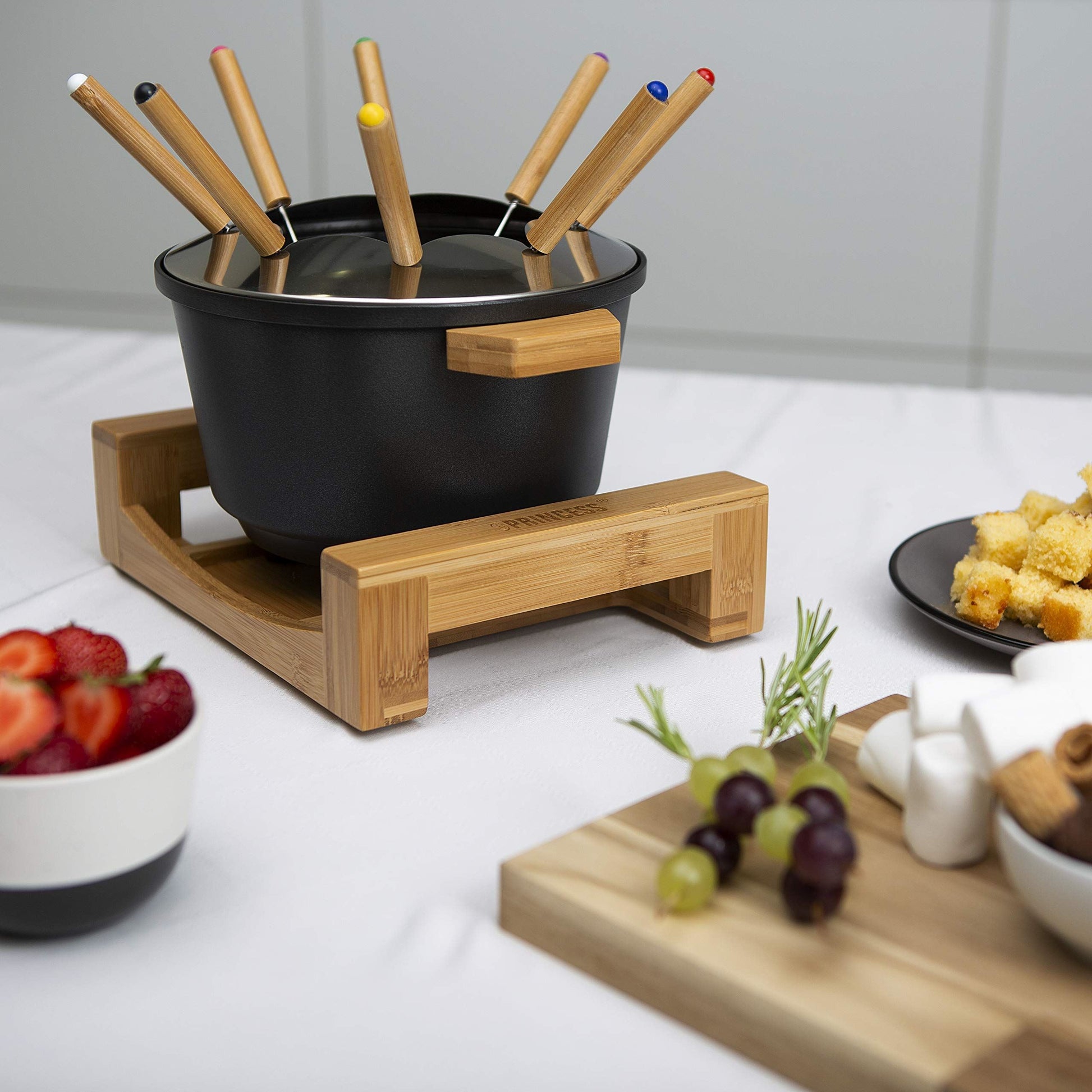 The Princess Fondue Pure is one of the modern design products from the Princess Pure range. All devices have bamboo incorporated in the design and fit perfectly together. Bamboo is a durable and hardwearing material that is not just beautiful to look at, but also stays cool to the touch so you will be able to move the fondue set around.