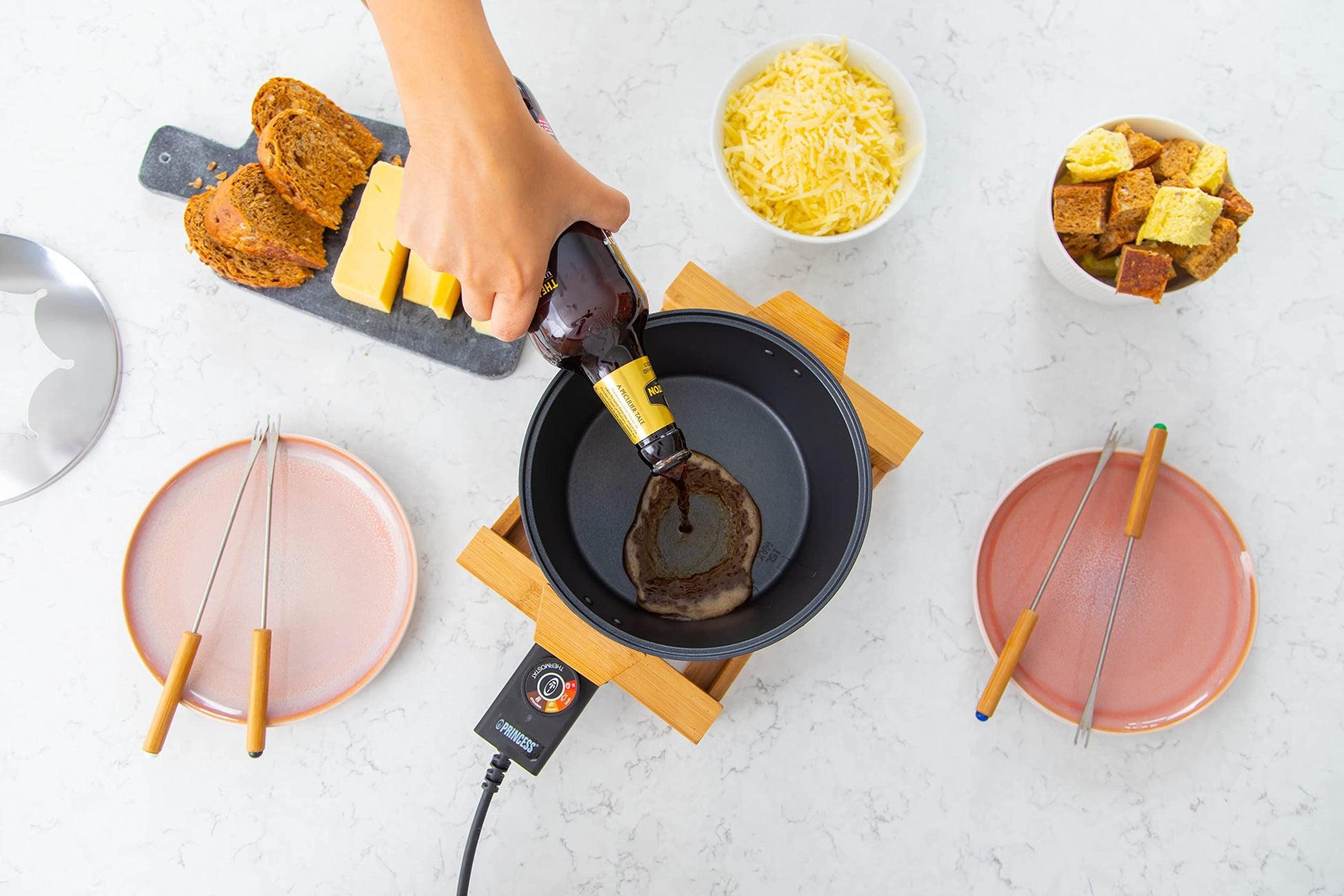 Together with the Princess Fondue Pure you receive 8 bamboo color coded fondue forks so you can enjoy a fondue fest with your entire family. The removable thermostat with a 800 Watt power has a handy indication so you can select the optimal temperature for each type of fondue with ease.