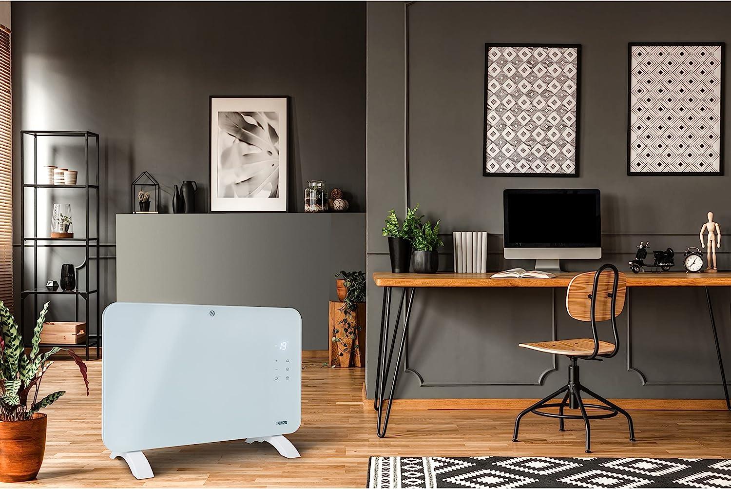 Smart Electric Panel Heater: Control your heating from anywhere in the world and come home to a warm home with the Princess Smart Panel Heater. Suitable For Rooms Up To 15 m2: This Princess connected radiator is a powerful 1000 W and features two heat settings, a high and a low power and an adjustable thermostat which can be set between 15⁰C and 35⁰C. Smart Connected: With the digital display or with the free app you can turn your heater on and off, set the heating power, set schedules and timers and adjust the temperature. Free Standing or Wall Mounted: The heaters come with an included stand, or you can use it wall mounted with the included wall bracket. Ideal for use in your home office, living area or bedroom. Safe in Use: Features child safety lock and overheat protection.