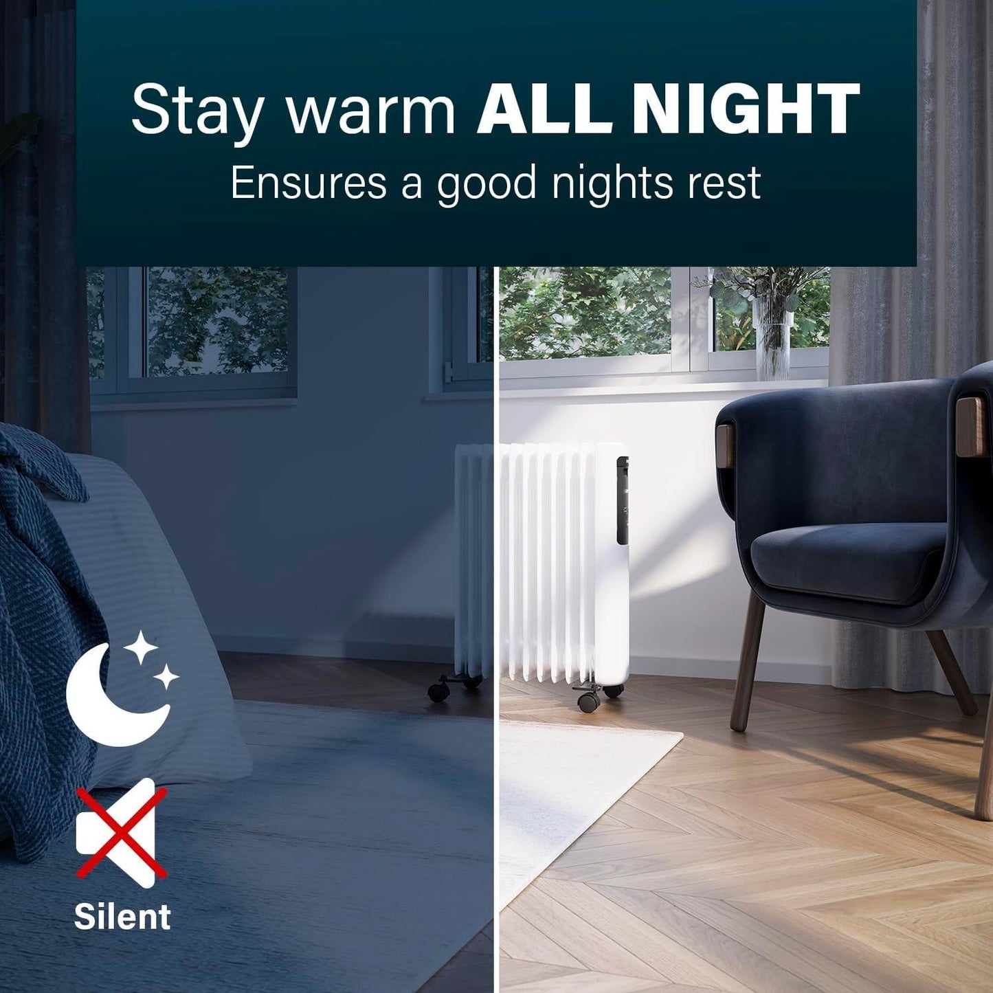 Provides a constant heat without noise