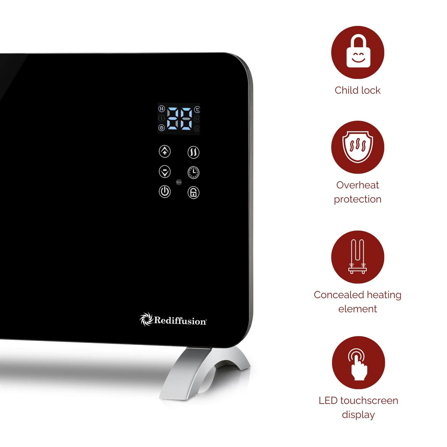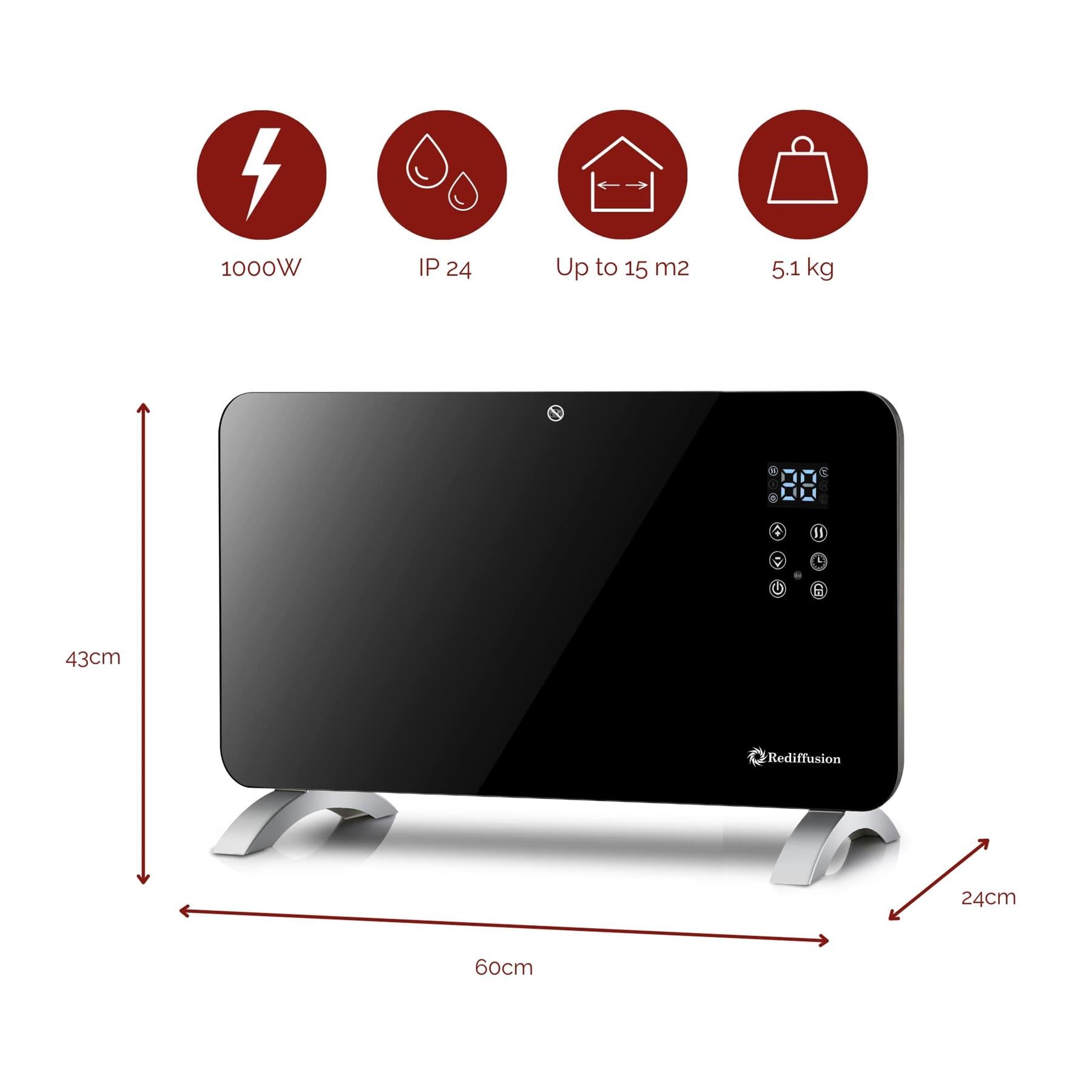 Rediffusion Smart Glass Panel Heater 1000W Black