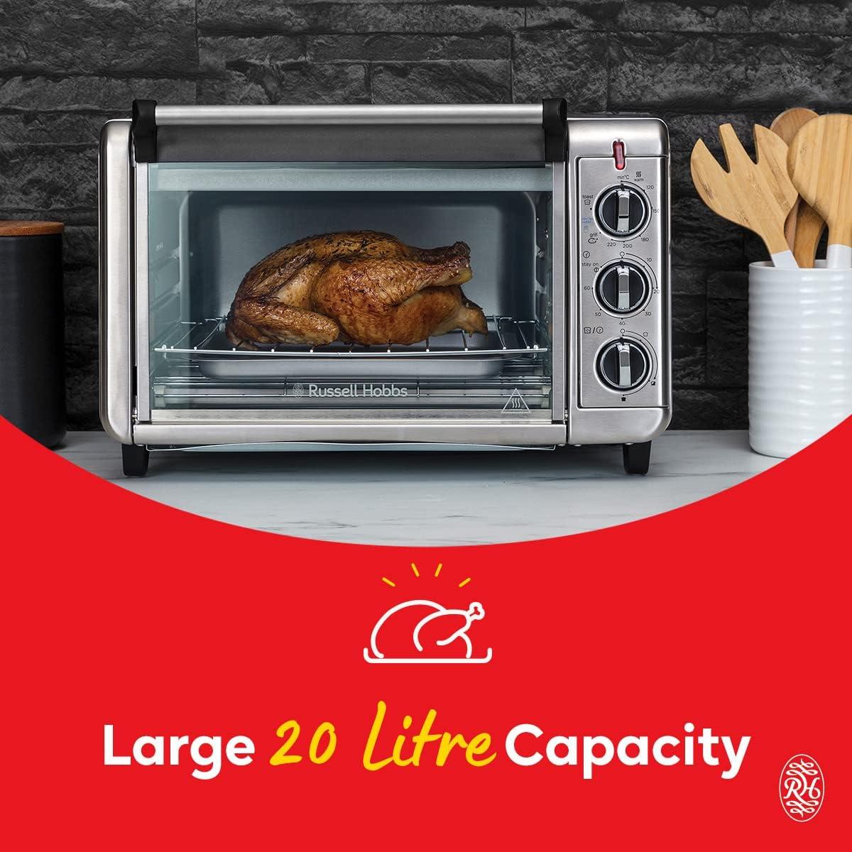 Air Fry Technology - Love the taste of fried food, but wish it was guilt-free? Simply use the function to fry anything from curly fries, buttermilk chicken and sweeter treats like air-fried donuts. Extra Large 20 Litre Capacity - With a Large Capacity of 20L, you can make enough food for everyone. Letting you cook everything from a whole chicken, 6 slices of toast, to a large pizza. Every Craving Satisfied Fast - Quickly rustle up tasty food in the Large Air Fry Express Mini Oven. Choose from 5 Different Cooking Modes: Air Fry, Bake, Grill, Toast and Keep Warm. 2.5x Faster and Energy Saving - It has a powerful 1500W Convection Fan that distributes heat evenly and Preheats 4x Faster. Best of all, it even saves you 63.1% Energy**. Bake Pan and Rack Included - Bake tasty sweet treats using the Bake Pan, or use the Rack to toast some crunchy slices of bread in under 4 minutes. 2 Year Manufacturers Guarantee - Plus 1 extra year when you register the product online. ‘The actual product may differ slightly from the image’