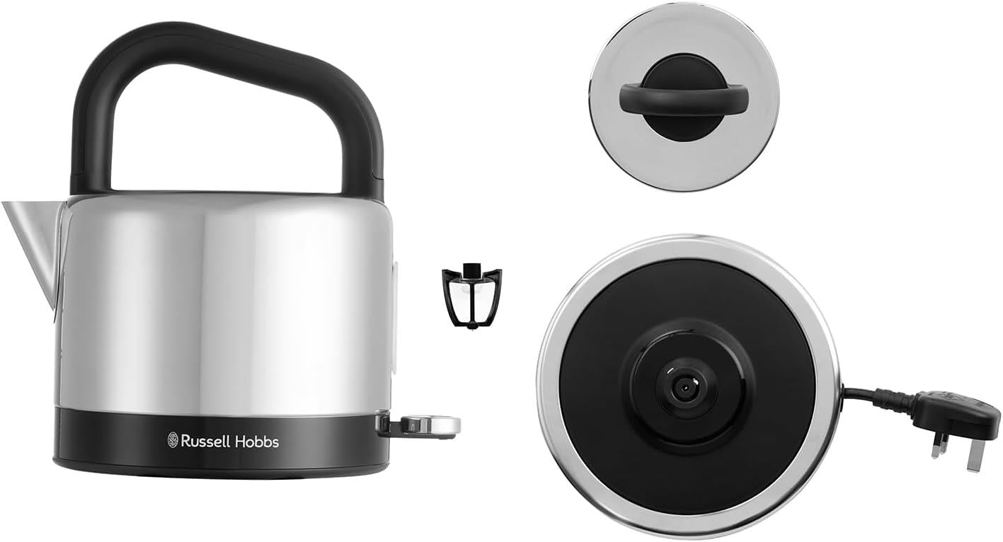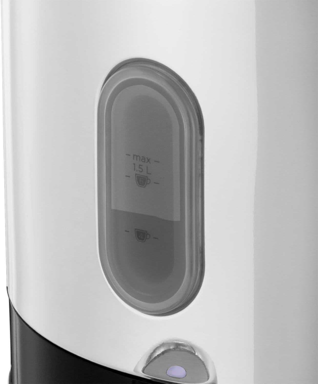 Get ready to show off because the star of the show in your kitchen could be the perfectly balanced Black Distinctions Kettle from Russell Hobbs. Its exquisite contemporary design with retro-influences means it will fit seamlessly into any style of home. Plus, it has all the functions and features you demand, including a perfect pour spout, water window so you can see where you're filling to, and capacity to make up to 6 hot drinks at a time. Rapid boil means it reaches 100°C in just 47 seconds* and it could save up to 64% energy** too. The Distinctions Kettle isn't just show-off worthy, it does everything you want a modern kettle to do. Aesthetics is key with the Distinctions Kettle. It's designed to have instant countertop appeal without compromising on the quality and functionality you expect from Russell Hobbs. With a 1.5L capacity it can make up to 6 cups at a time, so it's perfect for larger households or lots of visitors. It may have a distinctively designed finish, but this handle, with polished accent, is shaped for comfort when filling or pouring. Pour water smoothly, from kettle to cup with no spills and no mess. A clear water window allows you to see how much water is in the kettle. The cup markers mean you can top up to the level you need only boiling enough water for the drinks you're making saves energy and could save you money over time.