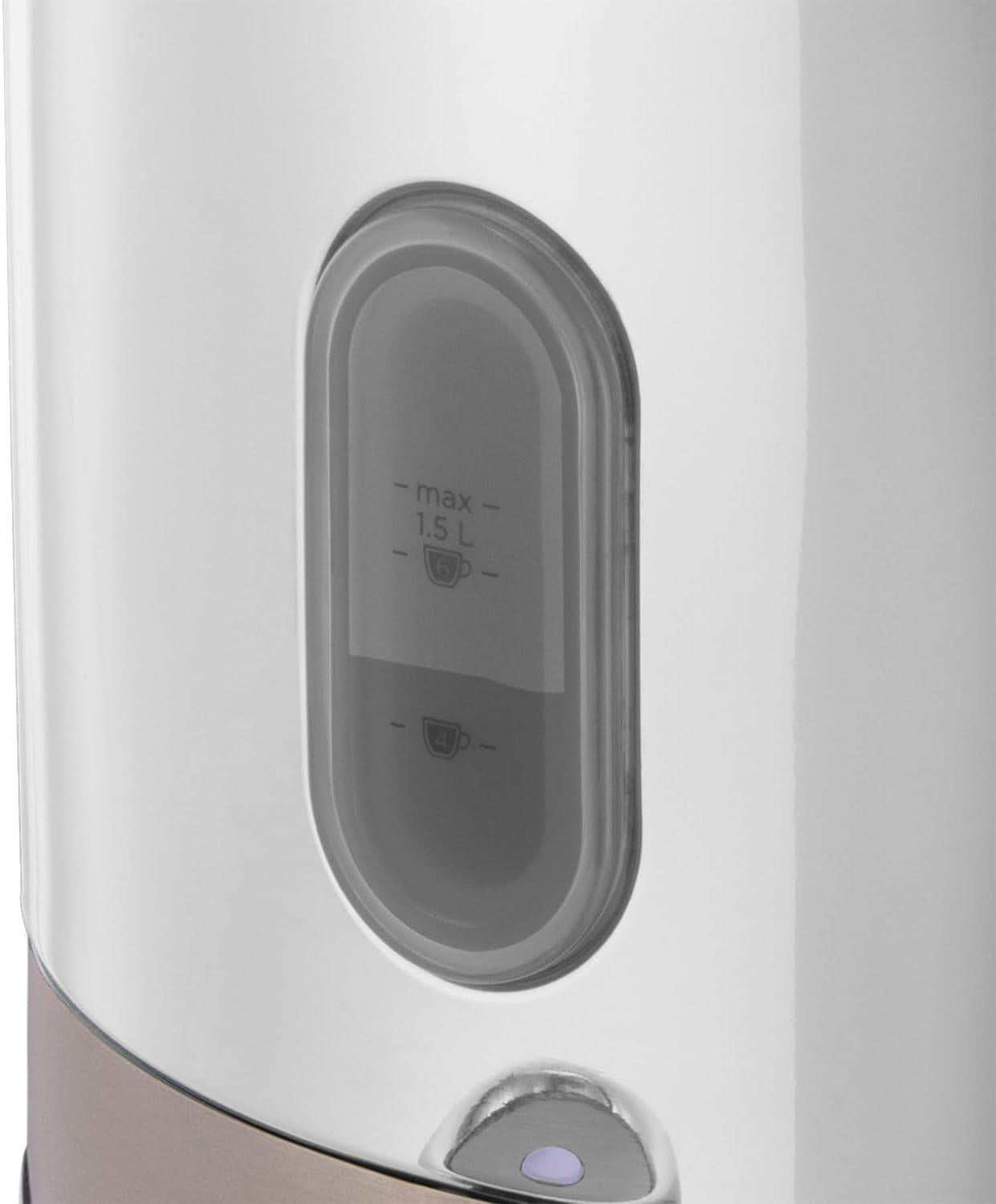 Get ready to show off because the star of the show in your kitchen could be the perfectly balanced Titanium Distinctions Kettle from Russell Hobbs. Its exquisite contemporary design with retro-influences means it will fit seamlessly into any style of home. Plus, it has all the functions and features you demand, including a perfect pour spout, water window so you can see where you're filling to, and capacity to make up to 6 hot drinks at a time. Rapid boil means it reaches 100°C in just 47 seconds* and it could save up to 64% energy** too. The Distinctions Kettle isn't just show-off worthy, it does everything you want a modern kettle to do. Aesthetics is key with the Distinctions Kettle. It's designed to have instant countertop appeal without compromising on the quality and functionality you expect from Russell Hobbs. With a 1.5L capacity it can make up to 6 cups at a time, so it's perfect for larger households or lots of visitors. It may have a distinctively designed finish, but this handle, with polished accent, is shaped for comfort when filling or pouring. Pour water smoothly, from kettle to cup with no spills and no mess. A clear water window allows you to see how much water is in the kettle. The cup markers mean you can top up to the level you need only boiling enough water for the drinks you're making saves energy and could save you money over time.