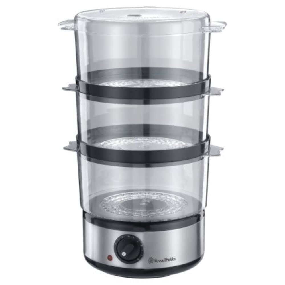 This Stainless Steel 3 Tier Steamer from Russell Hobbs is great for steaming meat, fish and veg to create that easy healthy meal you've been craving ! Its 7L compact capacity is perfect for smaller households. It has a 60 minute timer for precise results and has an auto shut off for safety. It's easy to dissemble for ease of cleaning and includes a handy rice bowl for practicality !