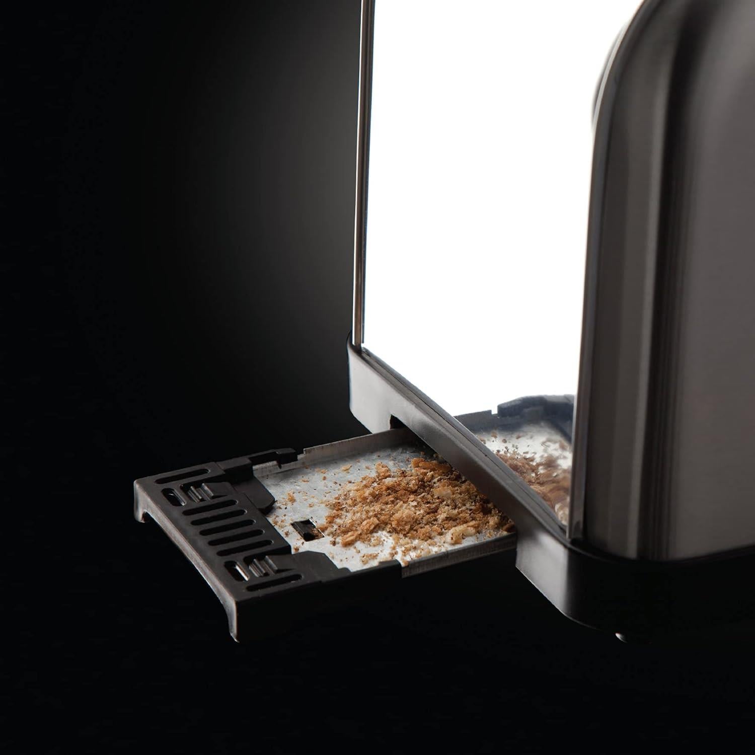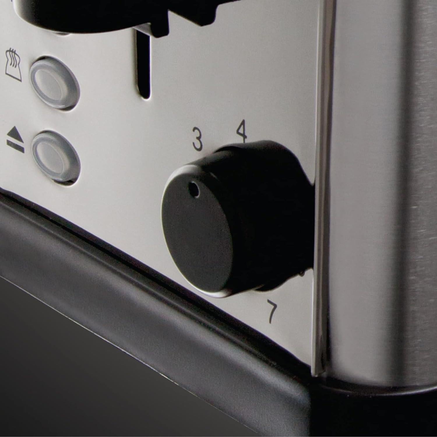 Simplicity and classic design are key to this Futura 2-slice Toaster, as well as high performance. The Futura Toaster is an iconic Russell Hobbs design that will be equally at home in modern or contemporary kitchens. Its classic, eye-catching brushed and polished stainless steel finish is assured to suit your kitchen. Designed to make the perfect slice of toast, while being simple yet eye-catching at the same time. Its variable browning control will ensure that your toast has the correct degree of browning every time and, for convenience, the Russell Hobbs Futura Toaster includes a frozen bread setting allowing you to toast straight from frozen. It will also reheat unbuttered toast and, should you want to stop toasting, simply press the cancel button. Whilst the red indicator allows for ease of use the removable crumb tray allows for clean and tidy kitchen work surfaces. Brushed & Polished Stainless Steel. 2 Slice. Frozen bread function. Cancel function. Reheat function. Red indictor lights. Removable crumb tray. Variable browning control.