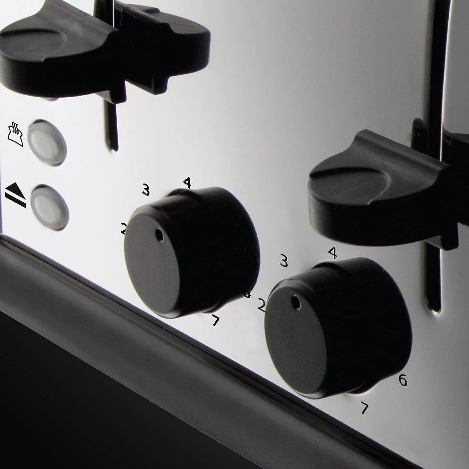 Simplicity and classic design are key to this Futura 4-slice Toaster, as well as high performance. The Futura Toaster is an iconic Russell Hobbs design that will be equally at home in modern or contemporary kitchens. Its classic, eye-catching brushed and polished stainless steel finish is guaranteed to suit your kitchen. Designed to make the perfect slice of toast, while being simple yet eye-catching at the same time. Its variable browning control will ensure that your toast has the correct degree of browning every time and, for convenience, the Russell Hobbs Futura Toaster includes a frozen bread setting allowing you to toast straight from frozen. It will also reheat unbuttered toast and, should you want to stop toasting, simply press the cancel button. Whilst the red indicator allows for ease of use the removable crumb tray allows for clean and tidy kitchen work surfaces. Brushed & Polished Stainless Steel. 4 Slice. Frozen bread function. Cancel function. Reheat function. Red indictor lights. Removable crumb tray. Variable browning control.