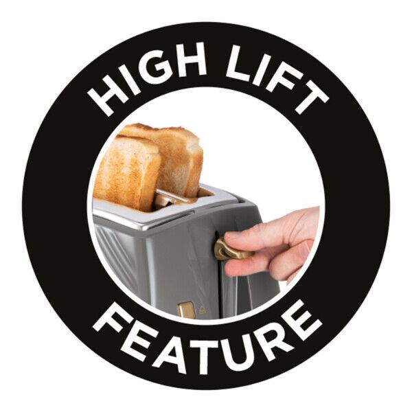 Stay ahead of the latest home trends with the Russell Hobbs Grey 2-slice Groove Toaster. It combines design credentials such as textured plastic with gold accents, and all the technical features that make life easier. For example, a browning dial with 6 shade settings takes the guesswork out of toasting.