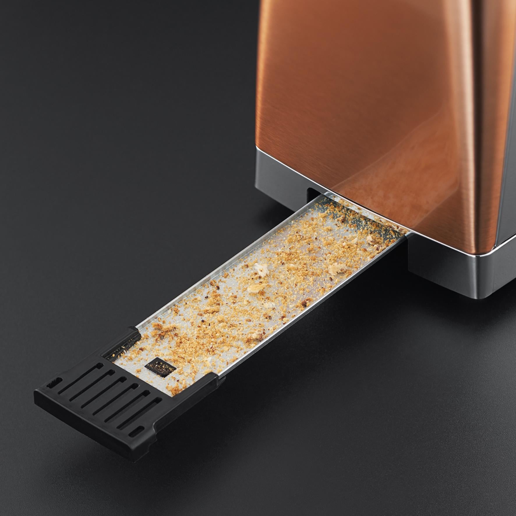 Enjoy a magical moment every morning with the awe-inspiring Luna Copper Long Slot Toaster. Combining a polished stainless steel with strikingly bold copper ends, this copper toaster captures the powerful and rare experience of a lunar eclipse on your kitchen worktop. This 2 slice toaster is as unique in appearance as it is in performance. Designed with variety in mind you can toast a range of breads from the soft squashy slices your little ones love to that crunchy tiger bread that you enjoy. The Luna Copper Toaster is as remarkable in performance as it is in appearance with its extra-long slot. Perfect for those thicker slices cut from crunchy larger loafs or the longer style baguettes that you love. The lift and look feature lets you keep an eye on your toast without having to even cancel the cycle, simply lift the toast upwards to check how brown its looking. 6 toast settings. High-lift function for easy removal of smaller slices of bread. Lift and look function - view your toast without pressing cancel. Cancel, defrost and reheat function. 1420 watts. 0.72m cable. Cord storage. Removable crumb tray.