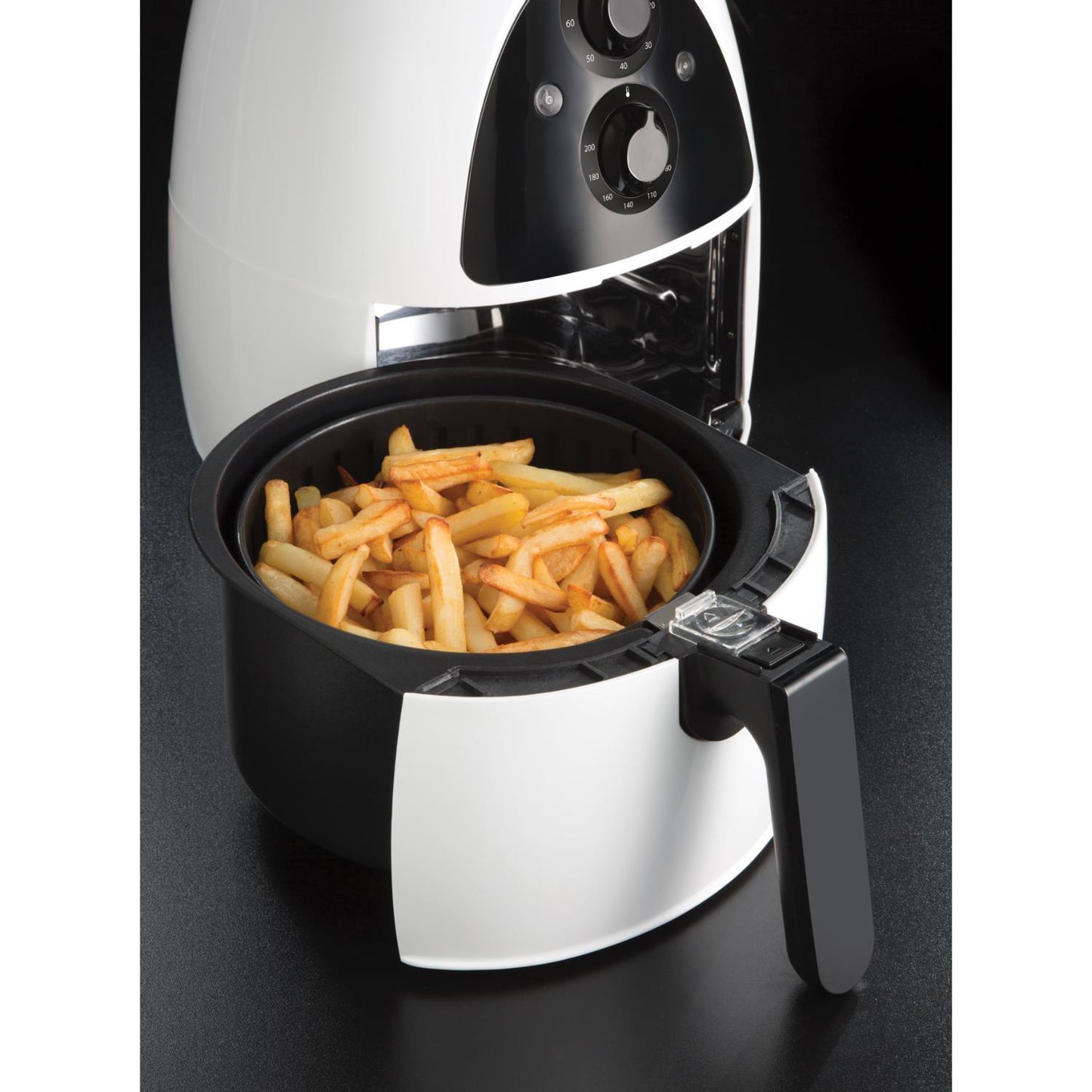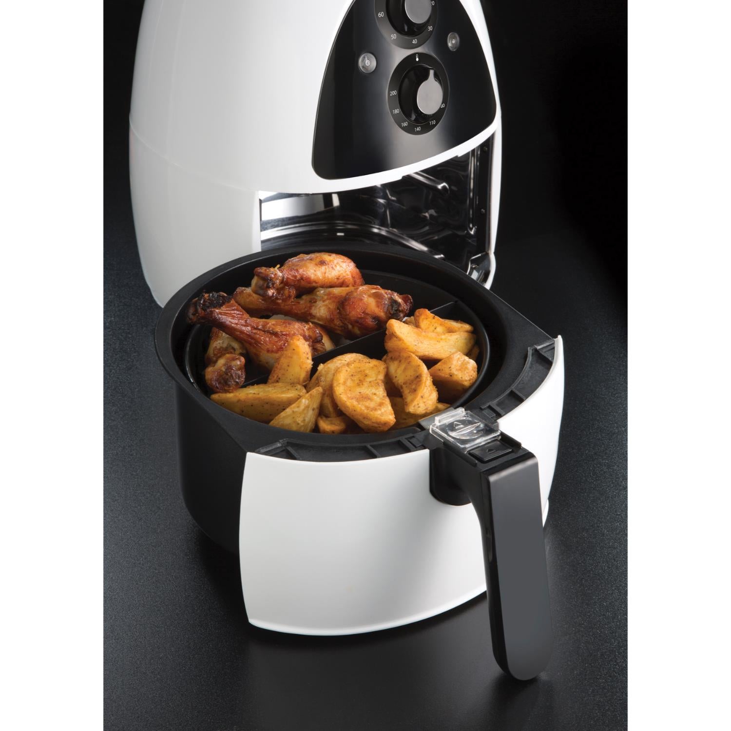 The Purifry from Russell Hobbs uses clever technology to harness the cooking power of pure, fast-circulating air to cook family favourites like chips or chicken nuggets without using oil or fat. The coatings are still crispy and the taste will speak for itself. A Versatile Way to Cook - Harnessing the cooking power of pure, fast-circulating air to cook family favourites like chips or chicken nuggets without using oil or fat. 2 Litre Capacity Drawer with Food Separator - You can cook meat, fish and vegetables separately at the same time - just set the controls to the right temperature and time that you need. Variable temp up to 200°C and 60 minute timer with auto switch off. Dishwasher Safe Parts - With no oil to dispose of, simply slip out the containers and wash in the dishwasher. 2 Year Manufacturer's Guarantee - Plus 1 extra year when you register the product online.