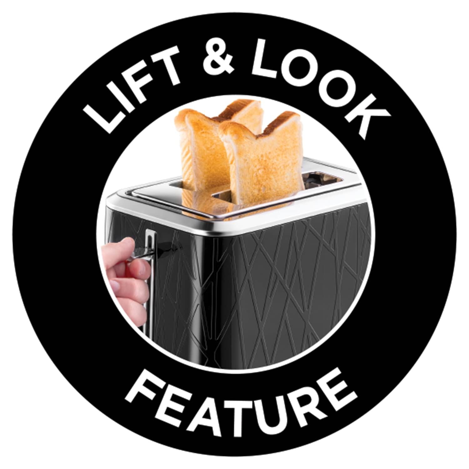 Enjoy your home comforts in style with the Structure Black 2 Slice Toaster. In a Premium Textured Black Plastic with Stainless Steel Accents, this toaster not only stands out but can endure endless toast making. The Lift and Look feature and Variable Browning Control lets you make your perfect toast, and the 3 Functions: Frozen, Reheat and Cancel covers your every toasting need. Statement Design That Lasts - Searching for a toaster that combines style and substance? Look no further than the Structure Black 2 Slice Toaster. Lift and Look - Want a sneak peek at how your bread is toasting? Simply lift, check on the toast, then place back down, all without breaking the cycle. Variable Browning Control - Whether you love a light, golden slice or need a bronzed, darker slice to really satisfy your toast cravings & this toaster lets you do it all. Frozen, Reheat and Cancel Functions - Toast a slice straight out of the freezer, reheat that slice you’d forgotten about, or click cancel to stop the toasting cycle. 2 Year Manufacturers Guarantee - Plus 1 extra year when you register the product online.