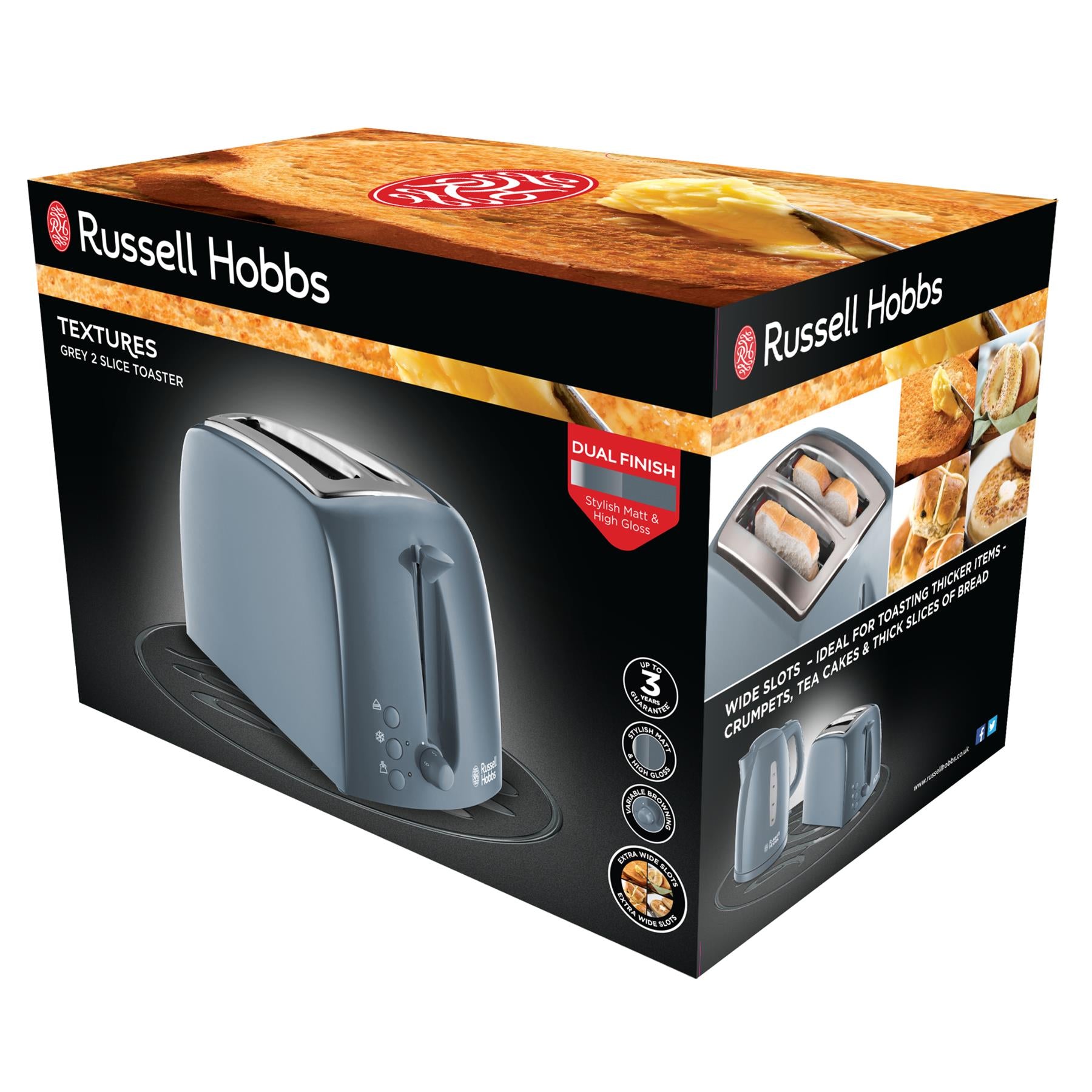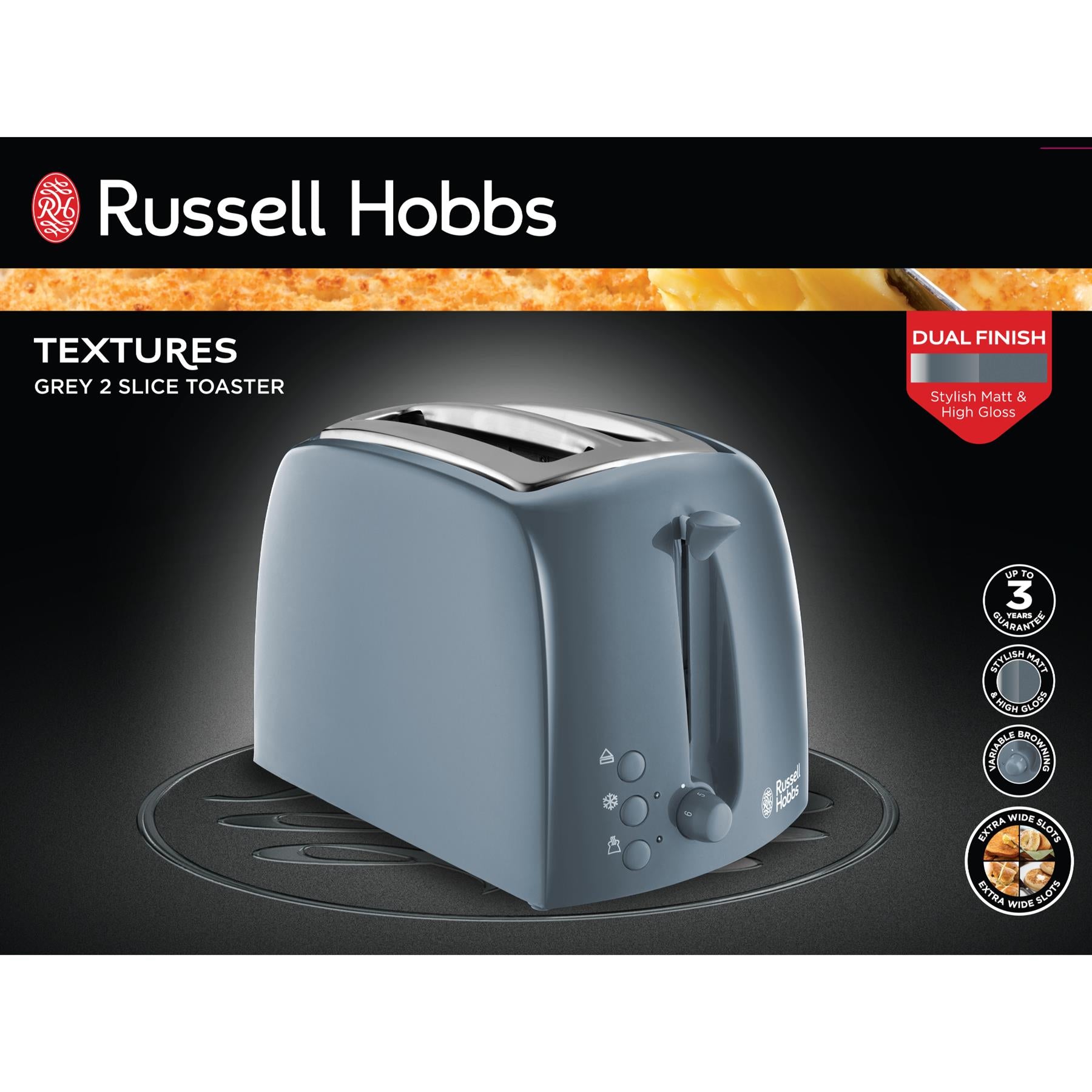 Russell Hobbs Textures Grey 2 Slice Toaster