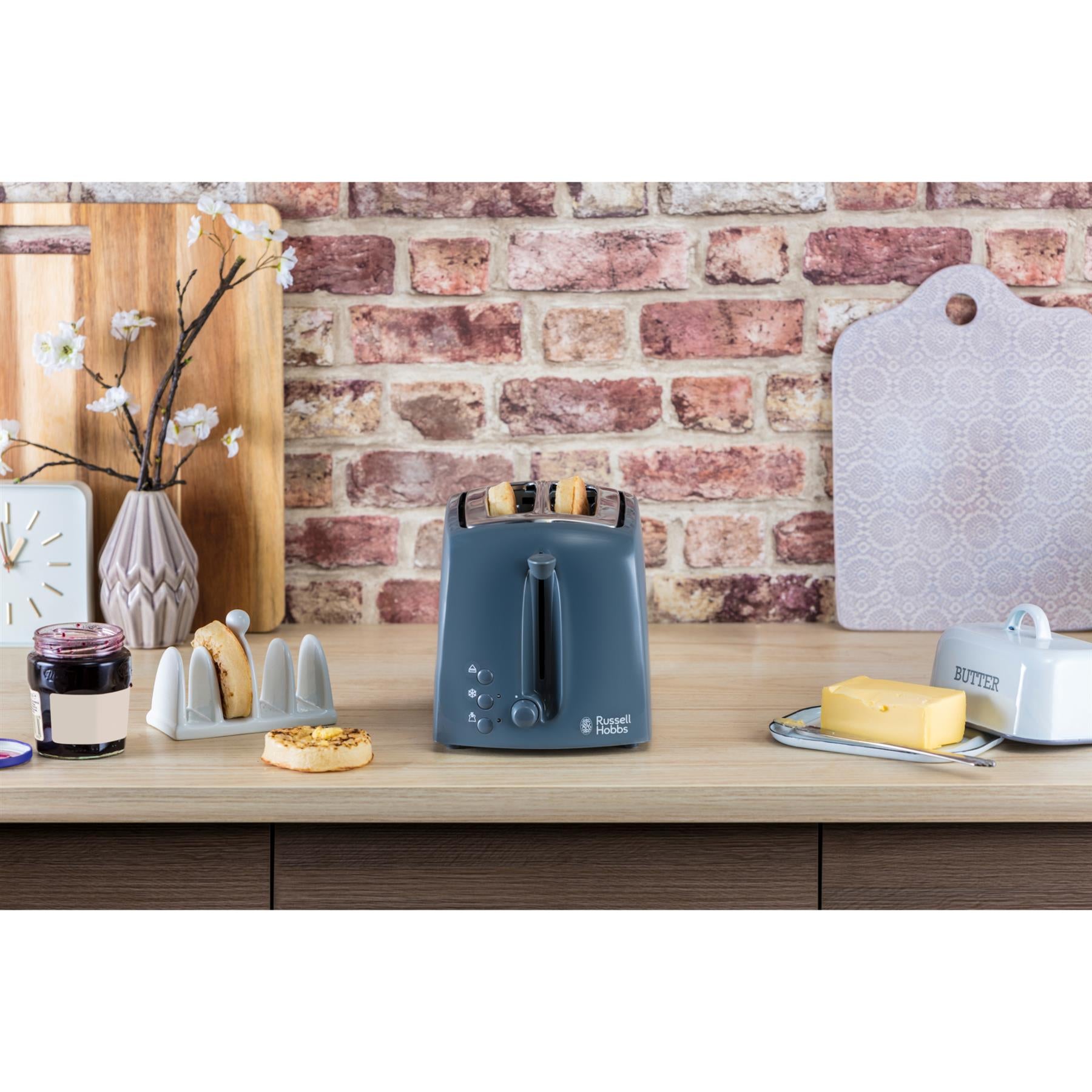 The Russell Hobbs Four Slice Grey Textures Toaster combines ideal looks with practicality. So if you’re looking for an ideal toaster without comprising on quality this is the toaster for you. The 21644 Textures Toaster combines a high gloss finish with matt accents making it a choice that will look ideal in both traditional and contemporary kitchens. It has extra wide slots, ideal for toasting a whole host of family favourites from crumpets to bagels whilst the removable crumb trays help keep your kitchen surface mess-free. If you like your bread a paler shade of golden but someone else likes theirs well done, the adjustable browning feature will make sure everyone enjoys toast that's just to their taste with a simple temperature dial setting on each half of the four slice toaster. The 21644 has a Frozen Bread feature that lets you toast bread straight from the freezer - an ideal way to keep your bread fresh and reduce food waste and also has cancel and reheat functions for your convenience.