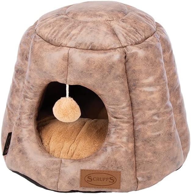 Scruffs® Knightsbridge Cat Bed provides a safe and comforting environment for your feline friend, with its eco- leather design, roofed exterior and super-soft, deep-plush fabric.