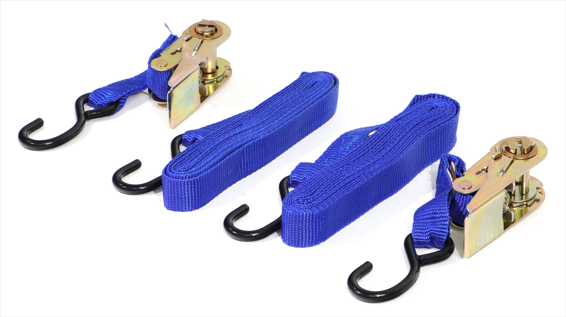 This pair of TUV/GS approved heavy duty ratchet tie downs are ideal for securing loads on cars, trucks, boats and motorcycles and they fit in a matter of seconds.