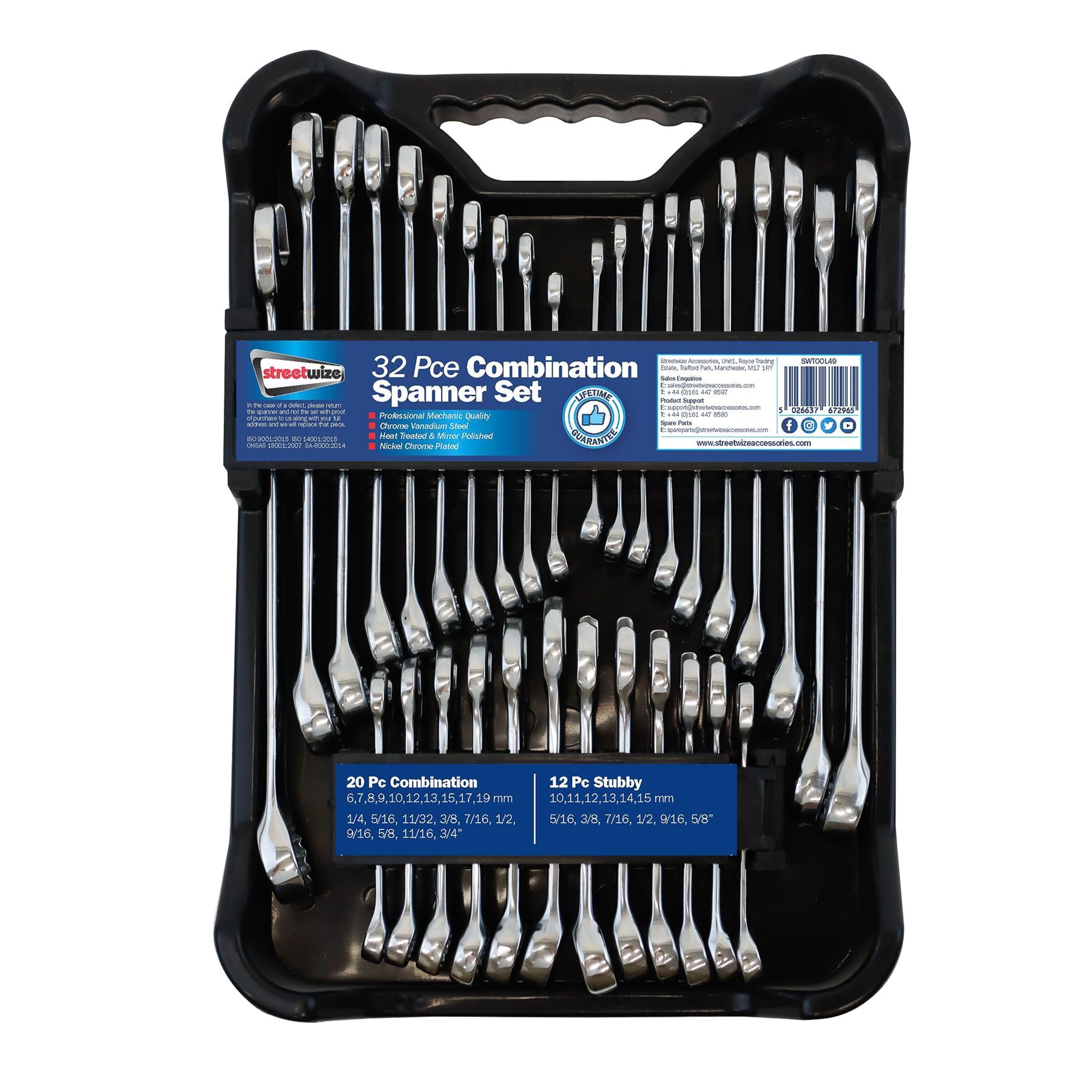 Streetwize 32 Piece Mirror Polished CRV Steel Combination Spanner Set