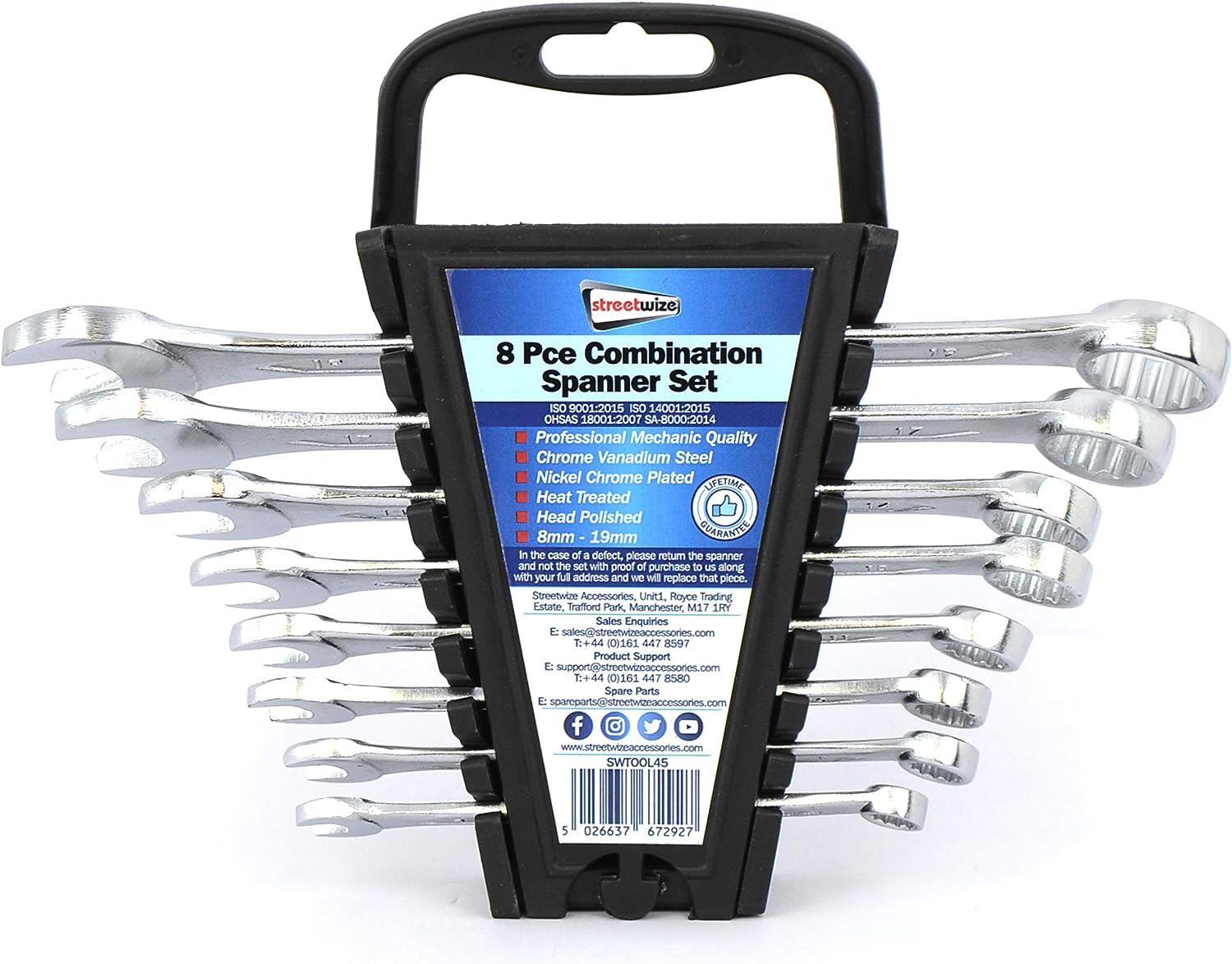 MADE FROM CRV STEEL: This high quality spanner set from Streetwize is made from CRV (Chrome Vanadium) steel, a steel alloy that is hardened and is resistant to abrasion, oxidation and corrosion.