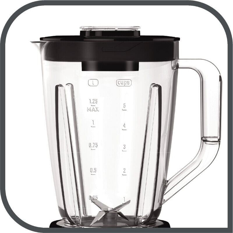 Optimum blending: a 600W motor, four robust stainless-steel blades and a tapered jug shape combine for efficient blending without chunks, every time. It even crushes ice with ease. Cool running: the built-in air cooling system optimizes airflow through the motor to keep things cool, prevent overheating and extend the life of your blender. Solid performance: Four suction feet keep Blendforce II stable on your worktop, no matter how tough the ingredients. Easy to use: with a two-speed (plus pulse) rotary dial for custom blending, 1.25L capacity for big batches, ergonomic handle for comfort, and dishwasher-safe, removable parts for easy cleaning. Safe: the secure lock system shows you when the jug is locked securely onto the base, while the smart lid with filling hole lets you add ingredients safely and easily when the blender is in use. Faster blending: Six Powelix Technology sharp stainless-steel blades provide the optimal resistance, cutting performance and vortex action to amplify the mixing power for up to 30% faster results.