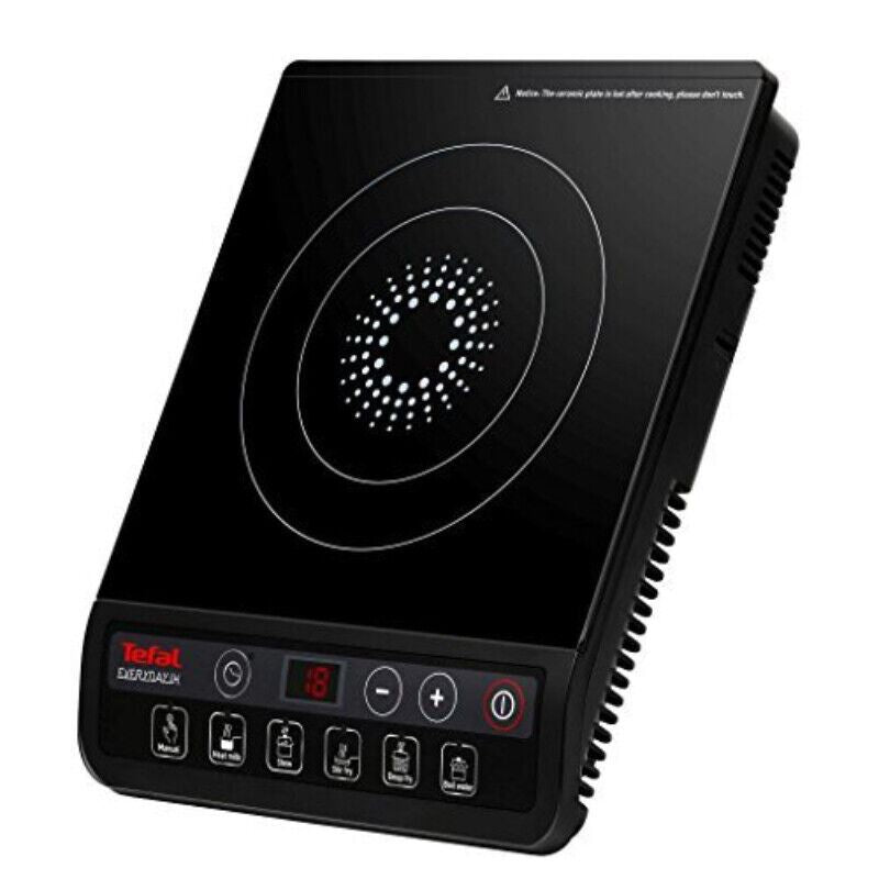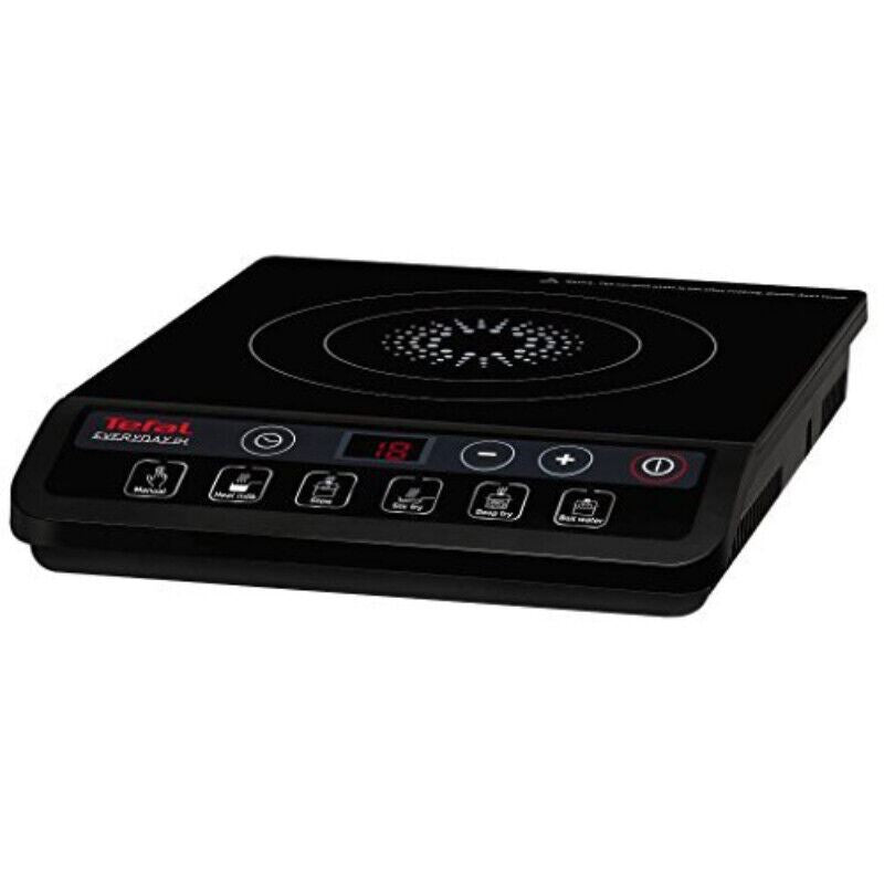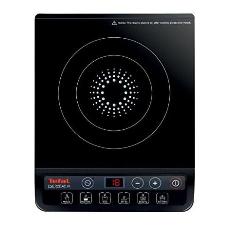 Get your kitchen up to date with the Everyday Induction Hob from Tefal. Compared to gas and electric hobs, it is safe and most energy efficient way to cook, while the extraordinary portability of Tefal's hob means you can even head outdoors with it for an impromptu cook-out. The Tefal Induction Hob is a boon for families as there are no flames to burn small fingers and the surface begins to cool the instant you stop cooking. In fact, heat is restricted to the pan as you cook - so even an ice cube placed alongside will not melt. For peace of mind, when not in use, the hob automatically switches-off after 5 minutes. The highly portable hob works as an additional cooking option for those bigger events like Christmas and Easter or even for cooking outdoors and camping. All you need is a near-by power-source and when you are done, it's simplicity itself to store. The ceramic coated plate ensures it's highly durable, scratch-resistant, looks smart and is simple to clean, as food doesnt burn on the surface. The Everyday Induction Hob makes a handsome and very handy addition to your kitchen. Tefal's versatile high quality, portable ceramic hob with multi-cooking functions (User Manual- PDF can be found attached under Product Description). Black ceramic plate: durable, scratch-proof, heat-proof and easy to clean. Suitable for pots and pans with base size 12cm-25cm.It works with pots made of iron (cast iron, stainless steel or enamel) with double bottom or magnetic induction materials with flat bottom diameter. 2 hours integrated timer with LED display control panel. Clean the ceramic plate using a damp soft cloth. 6 pre-set cooking functions (Manual, Heat Milk, Stew, Stir Fry, Deep Fry, Boil Water) and 9 power levels: from 450W to 2100W. Note: Do not operate on an extension cable where the combined power of the devices fitted exceeds 3.12KW.