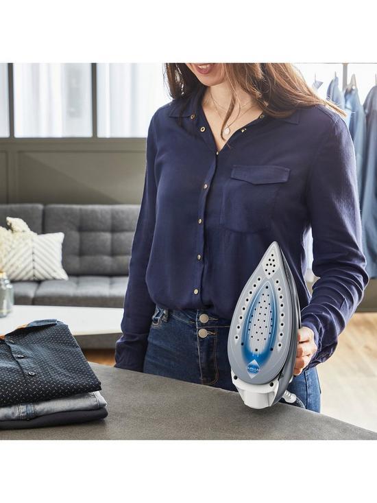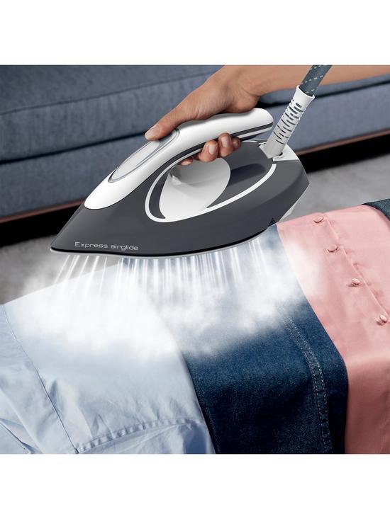 Cut up to 30 minutes off your ironing time by upgrading your steam iron to the super-powerful Tefal Express Airglide steam generator iron. With a generous 6.6 bar pressure producing a continuous steam output of 120g/min - up to 3x more than a traditional steam iron - the 2800W Express Airglide delivers perfect results, fast. And tough creases don't stand a chance against its impressive 450g boost.