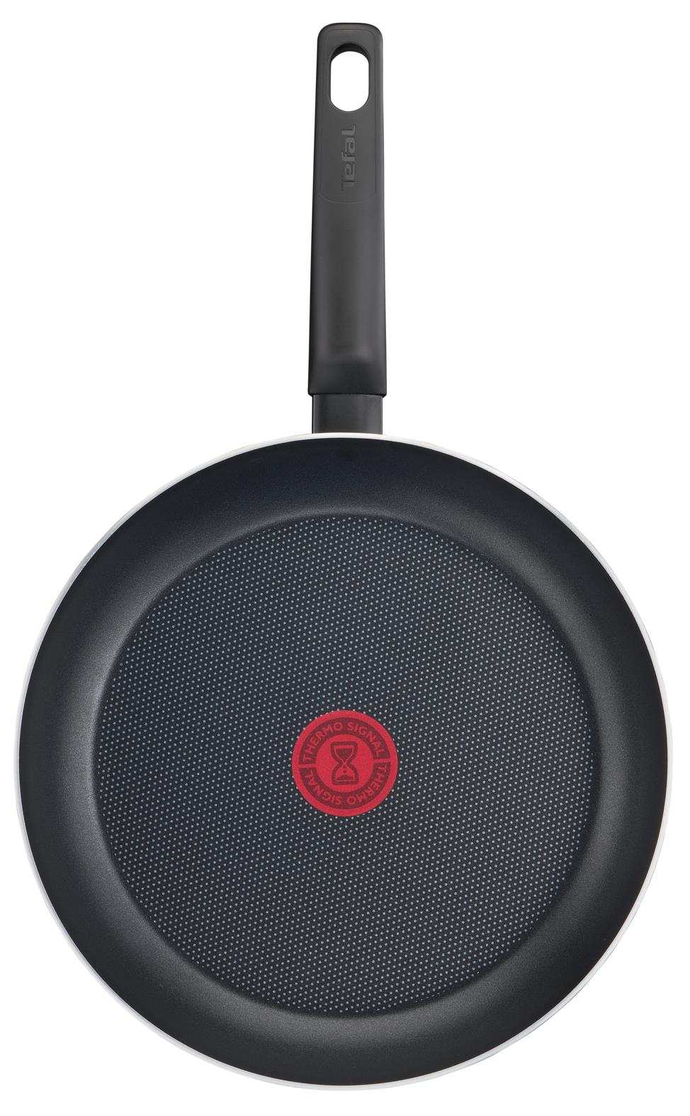 The new Simple Cook frypan produces great results with none of the hassle. Discover fully-coated cookware - inside, outside, even the flameguard for smooth and painless clean-up that couldn't be easier. The high-quality Titanium coating was built to last, while a diffusion base produces optimum heat distribution for evenly-cooked food and the handle offers enhanced ergonomics for maximum comfort. This high-performance frying pan puts flawless searing and fat-free cooking within reach thanks to a high-quality non-stick surface, for healthy results with uncompromising flavour. Whether it's everyday dishes made from scratch or a weekend crowd-pleaser to satisfy the whole family, there are no shortcuts in creating mouth-watering home cooking. Tefal offers cookware to fast-track the cleaning process, giving you more time to focus on what counts. Recommend handwashing to prolong lifespan of the pan, but it is also dishwasher safe. Guarantee - 1 year. Diameter 28cm. Easy to clean thanks to the full coating. Thermo-signal technology. Titanium non-stick coating. 100% safe non-stick coating that's PFOA, lead and cadmium free. Features a deep shape so you can cook large meals with ease.