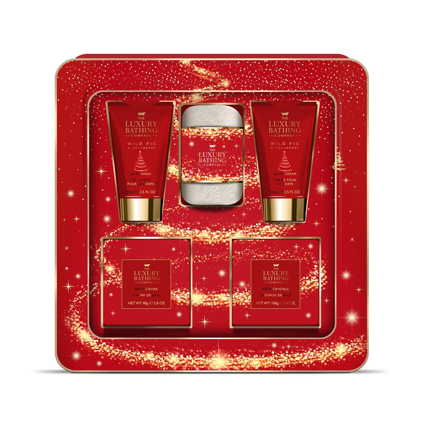 Full of festive fun, this enchanting collection captures the perfect balance of fresh cranberries with the rich, fruity aroma of wild figs for an indulgent bathing experience. Presented in a beautiful re-usable tin, this set contains a Luxury Flannel, 80g of Bath Caviar, 100g of Bath Crystals, a 75ml Body Wash and a 75ml Body Cream. From washes to fizzers and everything in between to unforgettable fragrances, The Luxury Bathing company has a whole range of enchanting gift sets for every budget. Beautifully packaged and perfectly designed, our range of Gifts are perfect for any big day. Our perfectly formulated, cruelty free products are sure to bring a smile to your friends and family. The Luxury Bathing Company's gifting range is perfect for everyone, utilising vegan friendly ingredients and methods free of animal testing, our gifts for him or her are made with love and care for the environment as well as you.